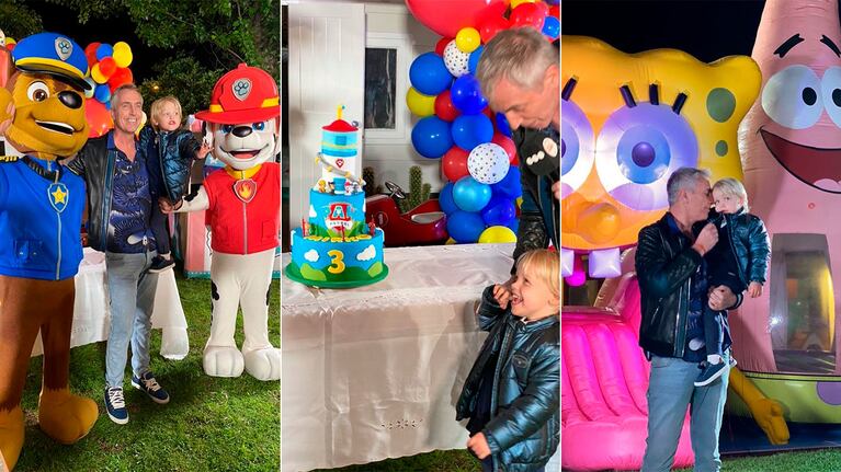 Acto siguiente, el conductor mostró los globos de colores con el nombre de su hijo que decoraban el espacio, la calesita, los puestos de feria que ofrecían pochoclos y a un payaso que también asistió para divertir al nene.