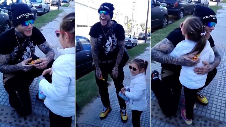 El mediático, súper agradecido, la abrazó y le dedicó dulces palabras. "Hola, ¿cómo estás? ¿Esto es para mí? Ay, gracias. Más linda. Sos una princesa hoy", le dijo. Además, cuando la nena le contó que lo quiere mucho él le respondió "yo también" y le pidió que le dijera un típico "sape" suyo.