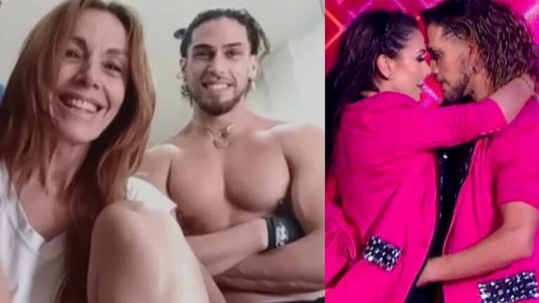 “Esto tiene que saberse en algún momento”, bromeó la actriz, que está en pareja con el actor y DJ Aitor Miguens, mientras agarraba a Tito, que estaba sin remera luciendo su trabajadísimo cuerpo en el móvil, y le daba un beso en la mejilla.