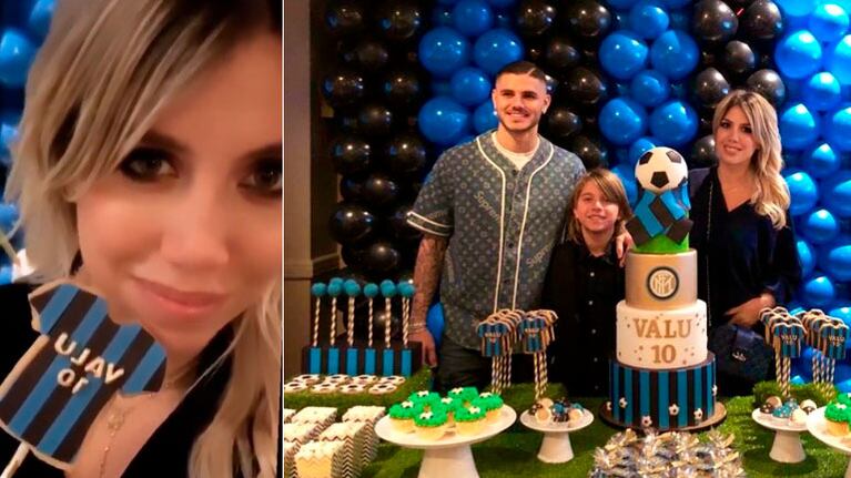 Esta vez, Valentino López celebró sus 10 añitos con un cumple completamente alusivo al Inter de Milán. Desde la torta, los globos, hasta el mega candy bar completo, absolutamente todo tenía los colores del equipo que representa Mauro Icardi. Cabe destacar que Maxi López se desempeña en el Vasco da Gama, de Brasil, y semanas atrás había cruzado elípticamente a su ex por el favoritismo futbolero de sus hijos en común.