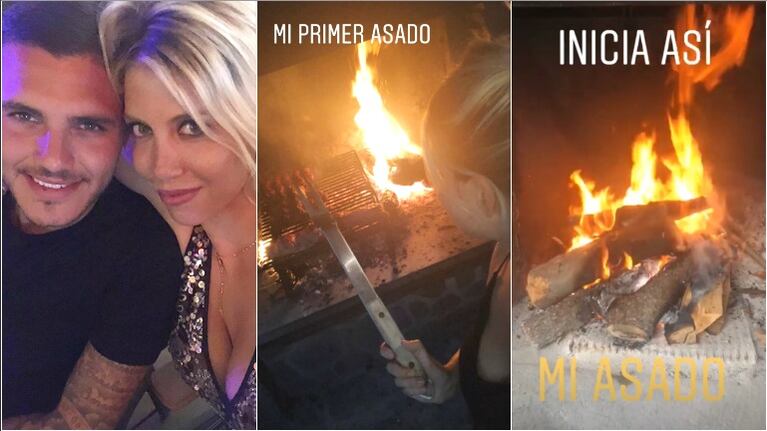 Wanda Nara: "Mi primer asado. Mauro Icardi salió de entrenar y cuando llegó... toda la carne en el asador".