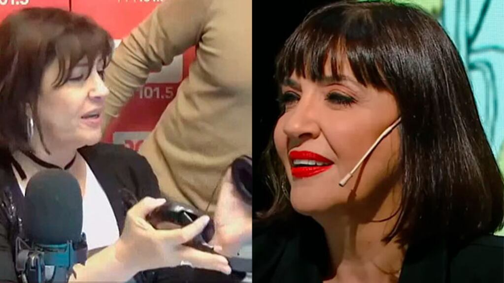 “Che, se me rompió el auricular, toma. Todo funciona como el oj…”, dijo la presentadora y luego de que le pasaran otros, siguió: “La p… que los parió a cada uno de ustedes”.