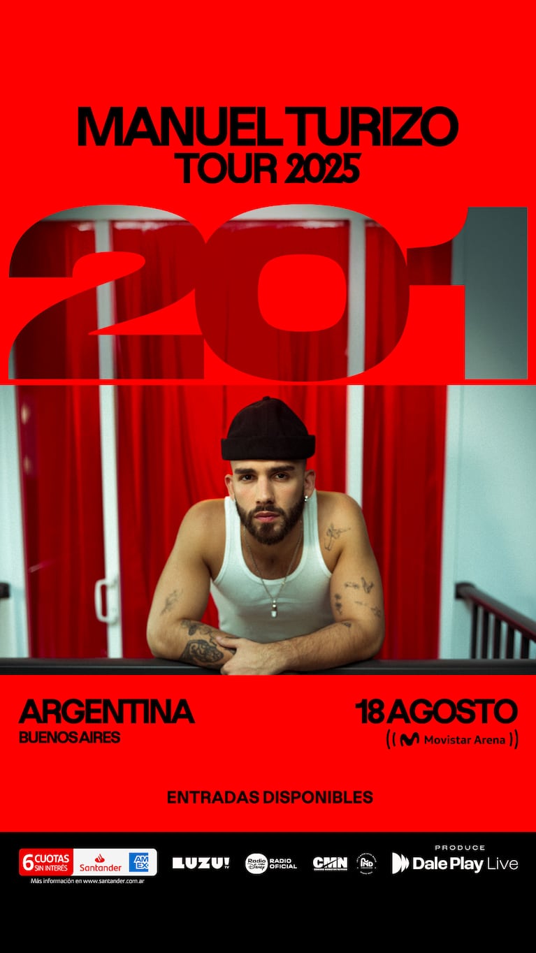 Manuel Turizo está posicionado como uno de los artistas más escuchados en habla hispana. Este 2025 estará llevando a cabo su gira internacional “201 tour”, un recorrido que lo llevará por los escenarios más importantes de Latinoamérica y Estados Unidos.
