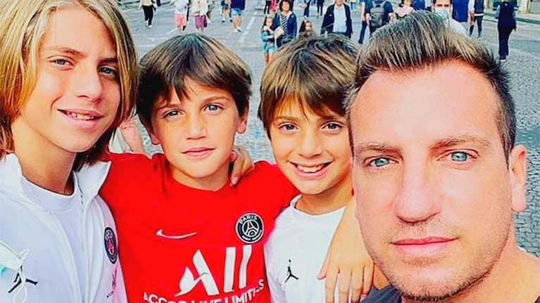 El exfutbolista publica a diarios sus postales junto a Valentino, Constantino y Benedicto.