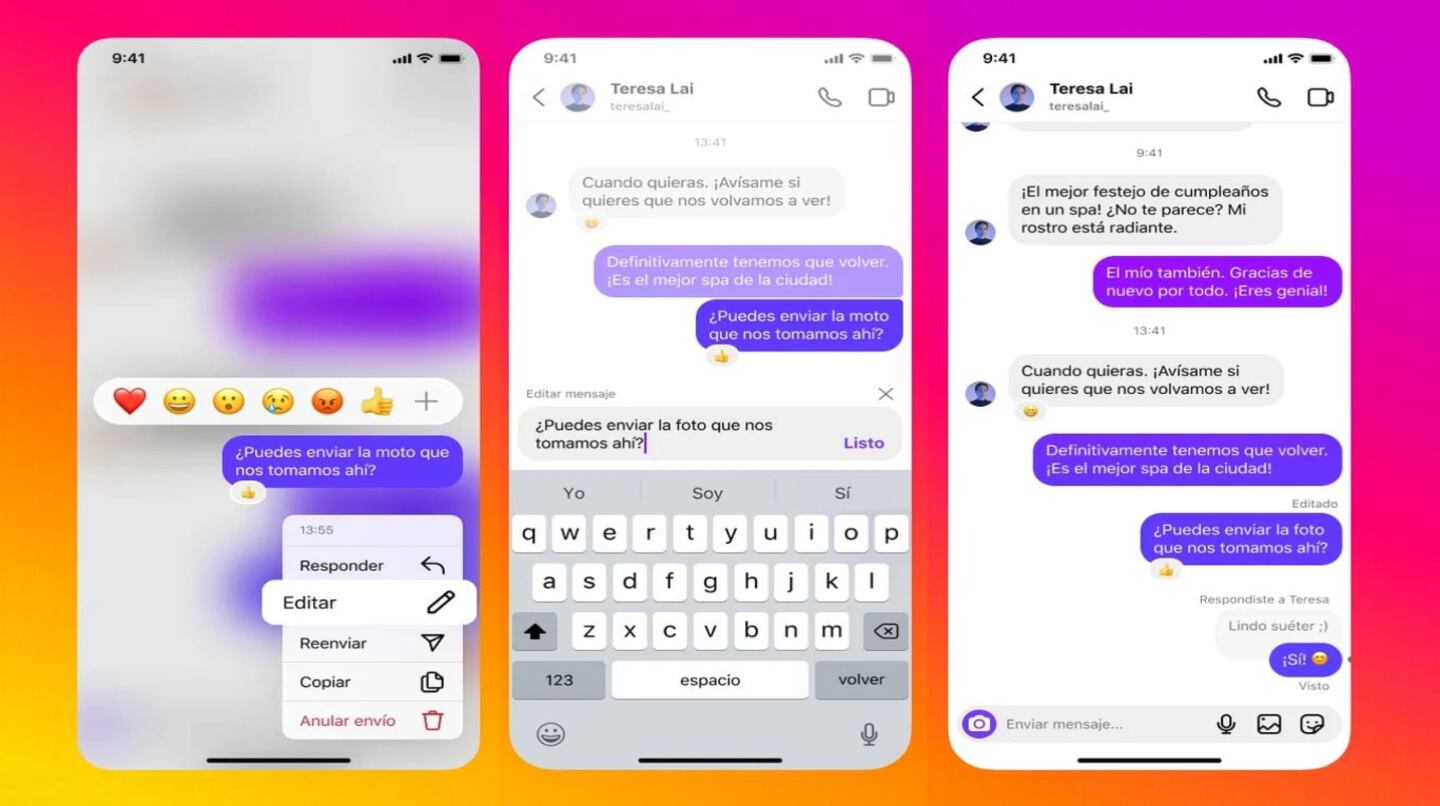 Siguiendo esta línea, Instagram anunció una nueva función con la que permite editar mensajes directos hasta 15 minutos tras ser enviados.