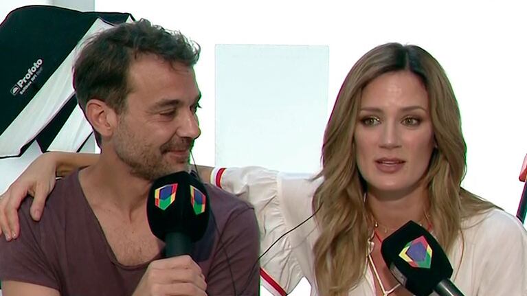 La conductora le dio un móvil a Intrusos junto a su marido, quien intentó que su mujer opine diplomáticamente de su salida del show, pero no pudo.