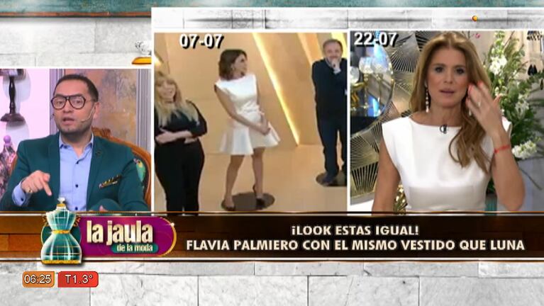 La conductora y actriz lució un vestido que ya había usado Silvina Luna con dos semanas de diferencia. El ojo clínico de La Jaula de la moda detectó este bochorno y lo analizó por supuesto.