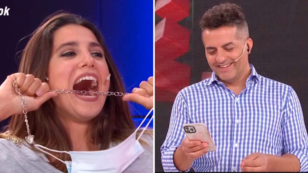 Los graciosos nervios de Cinthia Fernández cuando Ángel de Brito le revisó el celular en vivo