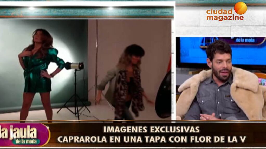 Mariano Caprarola presentó en exclusiva toda la intimidad de la sesión de fotos de Flor de la V para una importante revista. La conductora lució vestidos y faldas de su colección .