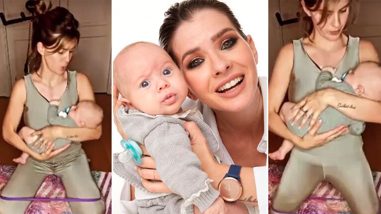 ¡Mamá full time! La China Suárez mostró cómo entrena con Amancio a upa