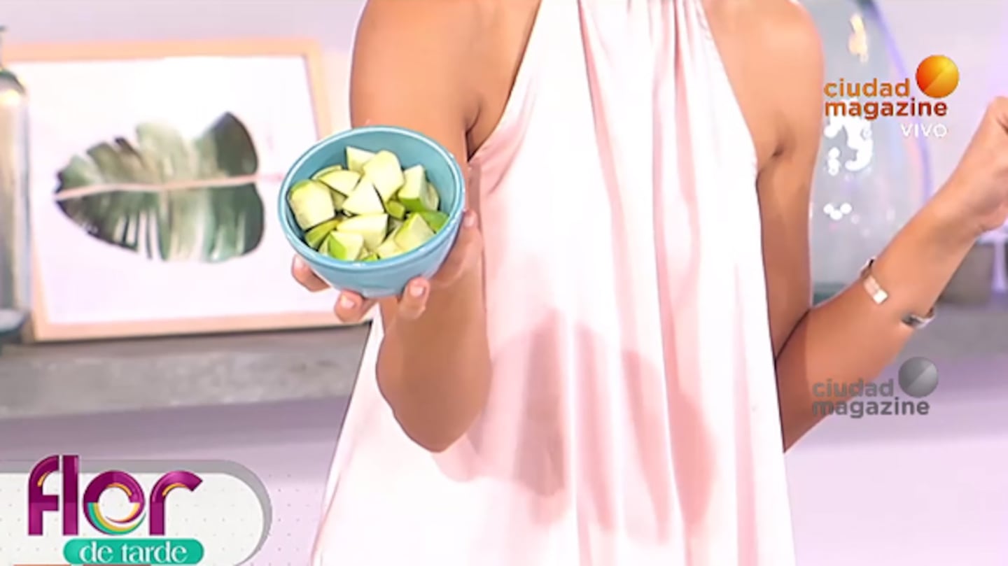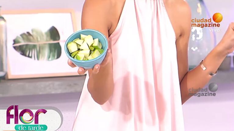 En una nueva entrega, Naty Franzoni preparó un jugo ideal para rejuvenecer y mejorar la piel. Anotá: 2 kiwis, 1 naranja, 1 manzana verde, 1 tallo de apio sin hojas, jugo de 1 limón , centella asiática y colágeno.