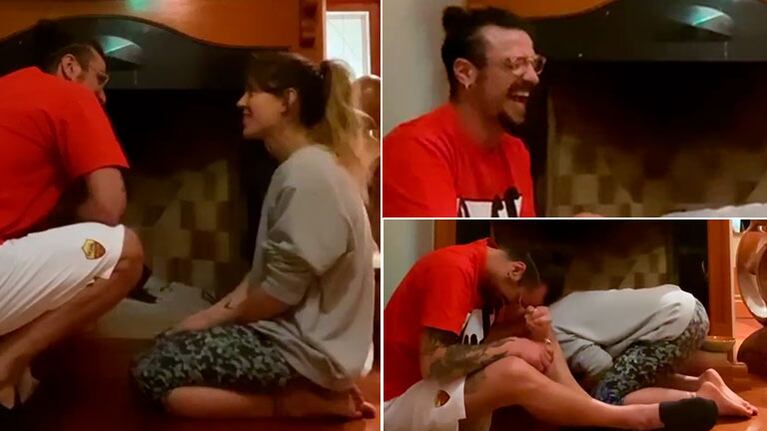 La artista sorprendió al futbolista al hacer una pícara broma referida a un tema por el que fue criticada en las redes. Video.
