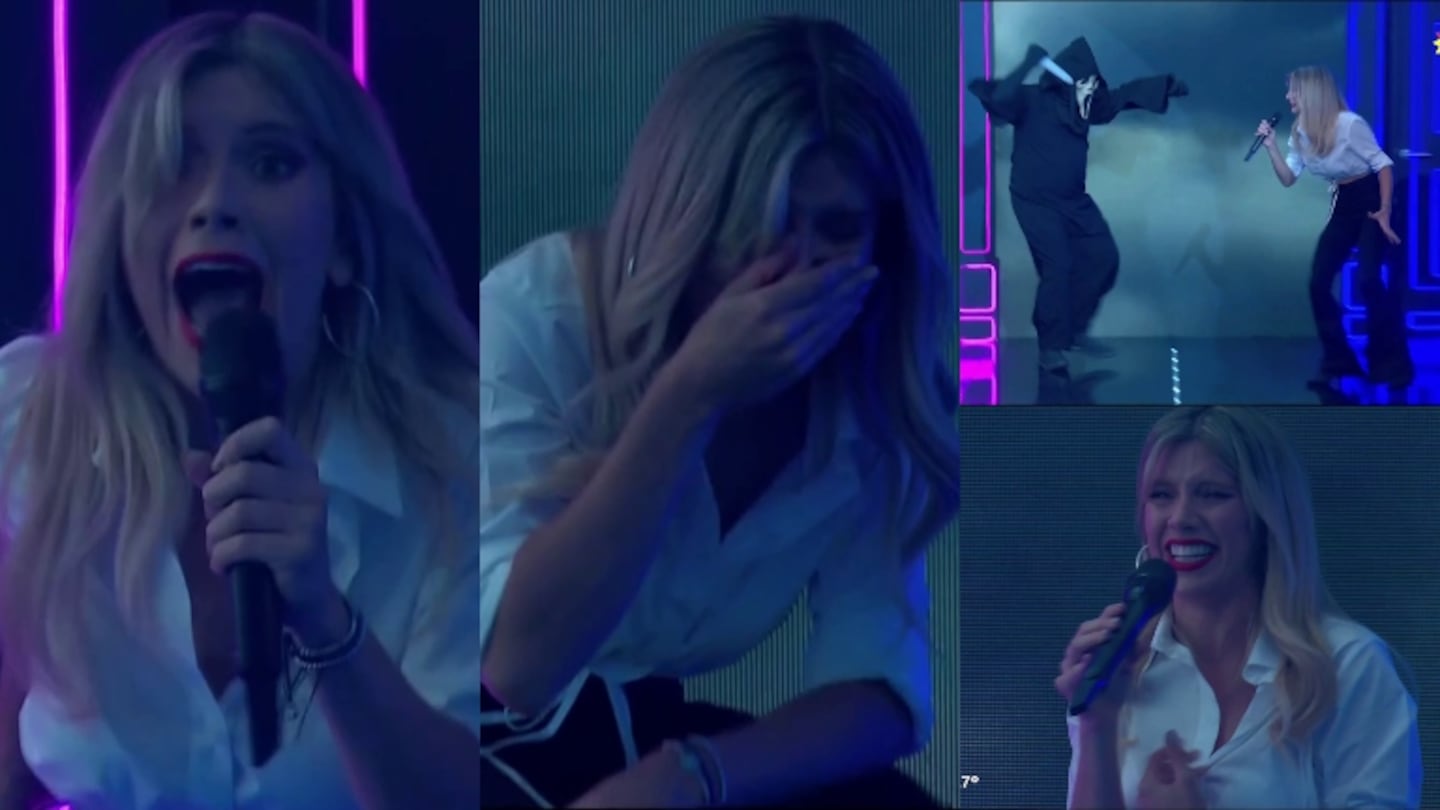 La reacción de Laurita Fernández al ver a un hombre disfrazado de Scream en Bienvenidos a bordo