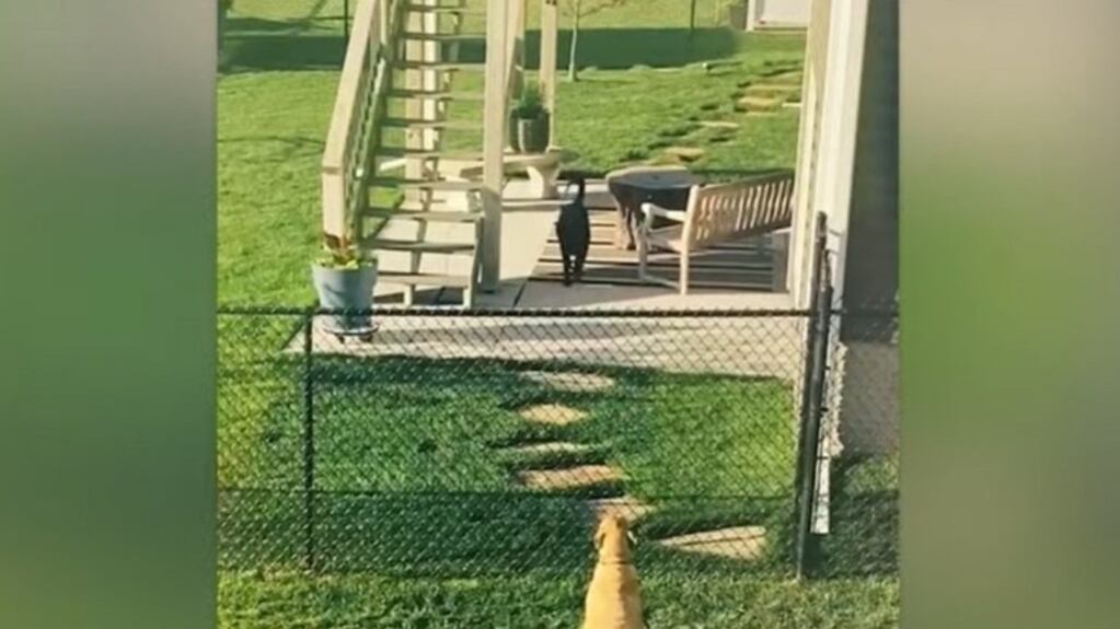 Desde entonces, cada vez que puede, Bowser espera pacientemente en la valla que separa su jardín del de su vecina y mejor amiga a que ella salga a pasar el rato juntos.