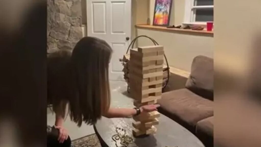 Tabitha Bergeron, de 31 años, estaba disfrutando de una fiesta con amigos cuando decidieron jugar una ronda de Jenga, el mítico juego que habilidad que consiste en construir una torre e ir sacando piezas sin que se destruya. Mientras la competición se calentaba, Tabitha se animó sacar una de las piezas centrales.